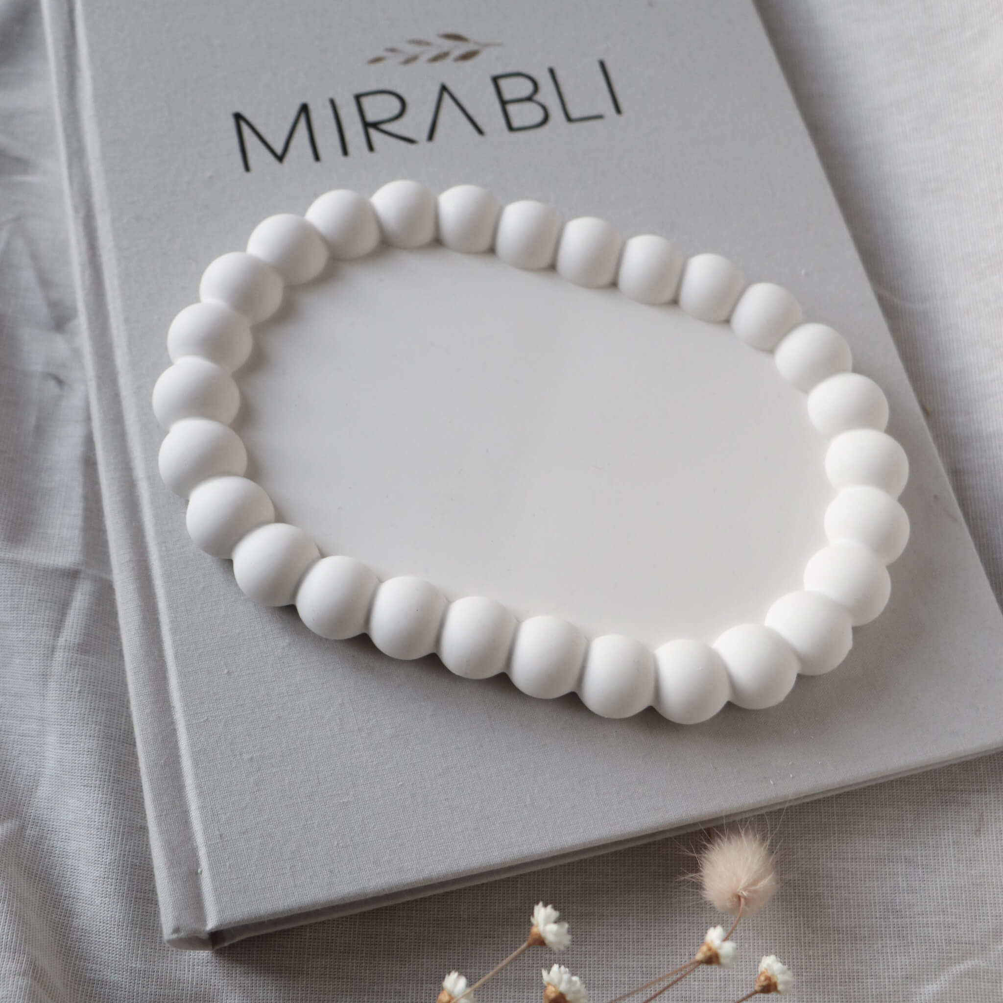 Jedes unserer Stücke wird in liebevoller Handarbeit aus Jesmonite gefertigt — einem innovativen Material, das aus einer mineralischen Basis und einem wasserbasierten Harz besteht. Durch den Gießprozess entstehen natürliche Luftblasen auf der Oberfläche und an der Unterseite, während leichte Abweichungen in Farbe und Struktur den individuellen Charakter jedes Produkts unterstreichen. Diese Besonderheiten sind keine Mängel, sondern machen jedes Exemplar zu einem echten Unikat.